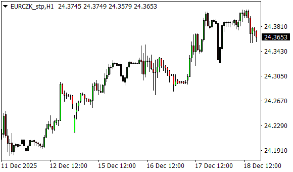 Vývoj měnového páru EUR/CZK (1hodinový graf - H1):