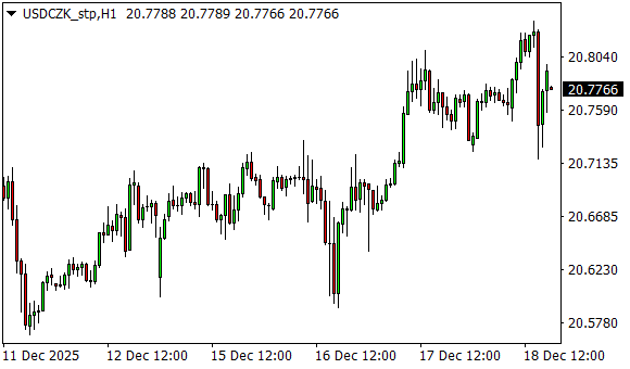 Vývoj měnového páru USD/CZK (1hodinový graf - H1):