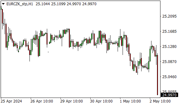 Vývoj měnového páru EUR/CZK (1hodinový graf - H1):