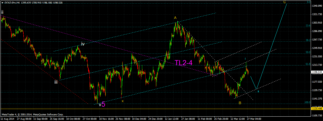 Zlato celý týden pokračovalo long směrem a myslím si, že je hotový první malý impusl I v vlny C . Nyní by tedy měla následovat podvlna II a potom opět long silnější vlna III. Jak jsem již několikrát uváděl, vycházím z předpokladu, že jsme v long korekci velikého short impulsu, tato korekce bude rovina a nyní jsme započali její long C vlnu, jejíž cíl by mohl dosáhnout předchozího vrcholu vlny IV, tedy hladiny okolo 1350 USD.