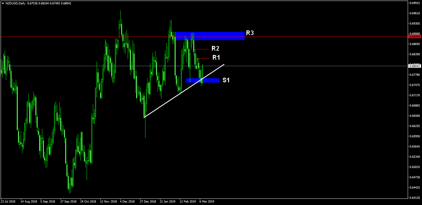 Cena rástla a vytvorila lokálny vrchol, ktrorý následne prelomila smerom nahor. Vytvoril sa lokálny support v grafe označený ako S. Cena tento support následne otestovala viackrát z hora. Pre tradera, ktorý vyhľadáva vstupy do smeru trendu a s úzkym SL, sú podobné situácie úplnou lahôdkou. Neváhal som. Zadal som príkaz a čakal na jeho vyplnenie. Po vyplnení obchodného príkazu trh okamžite vyštartoval mnou požadovaným smerom k TP, ktorý som umiestnil logicky: pod rezistenciu denného grafu. SL príkaz som umiestnil tesne pod zónu vstupu.
