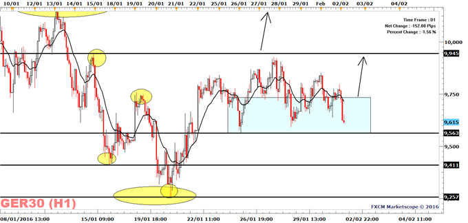 Tento scénář může ovlivnit i DAX, který by mohl klesnout pod 9 563. Dále by se pak naskytla možnost otestovat psychologické úrovně 9 500 a 9 400.