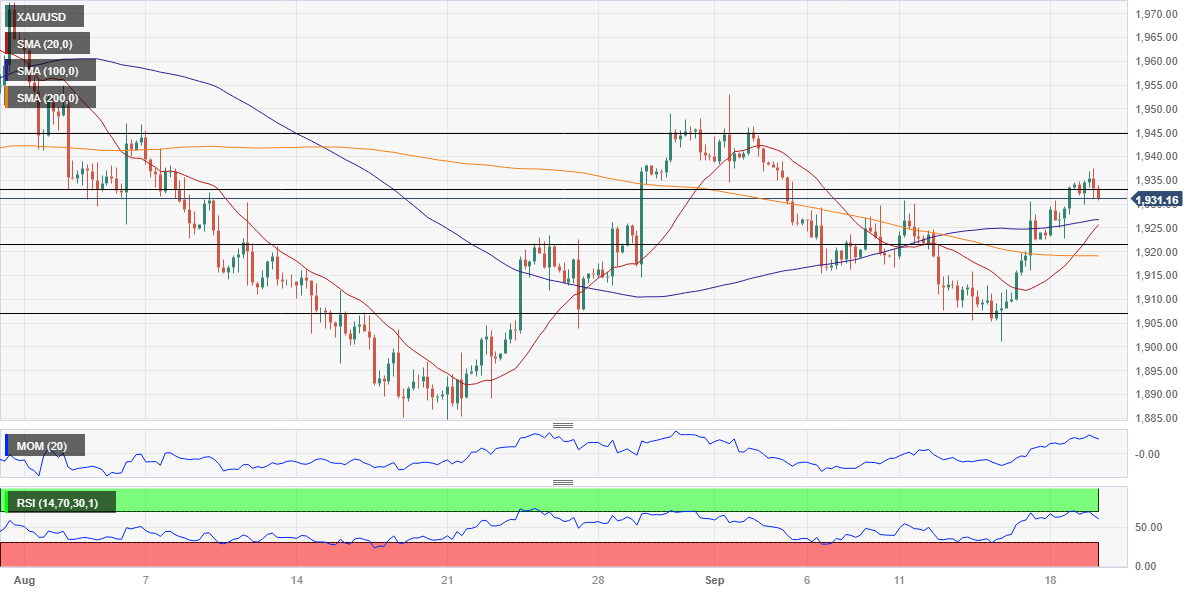 Zlato: Tato komodita je na denním grafu kolem hladiny 50 % Fibonacciho retracementu (1933,30). Včerejší maximum bylo na 1937,39, poté cena klesla. Nastavení je neutrální. Jsme pod klesajícím SMA 100, který koresponduje s Fibonacciho rezistencí 1944,85. SMA 20 a SMA 200 rostou pod aktuální hladinou kolem hladiny 38,2 % Fibonacciho retracementu (1921,80). Technické indikátory míří mírně dolů kolem neutrální oblasti. Na 4hodinovém grafu jsme nad klouzavými průměry. SMA 20 roste mezi SMA 100 a SMA 200. Technické indikátory korigovaly z překoupené oblasti do pozitivní zóny. Po prolomení pod 1921,80 by vzrostlo riziko dalšího poklesu.