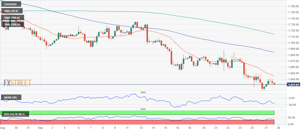 AUD/USD: Tento měnový pár je na denním grafu přeprodaný, ale nejeví známky vyčerpání prodejců. Technické indikátory míří dolů v negativní zóně. SMA 20 rychle klesá asi 300 pipů nad aktuální hladinou a pod SMA 100 i SMA 200. Na 4hodinovém grafu je očekávání medvědí. Technické indikátory míří do strany v přeprodané zóně, což značí alespoň mírné vyčerpání prodejců.