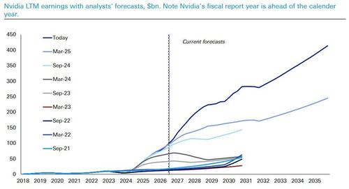 Vývoj zisků Nvidie za poslední tři roky byl fenomenální. Očekávání pro příštích 10 let jsou stejně tak vysoká. Co když se prognózy zisků výrazně zploští? To by zpochybnilo celý obchod s AI a optimismus na globálních trzích.
