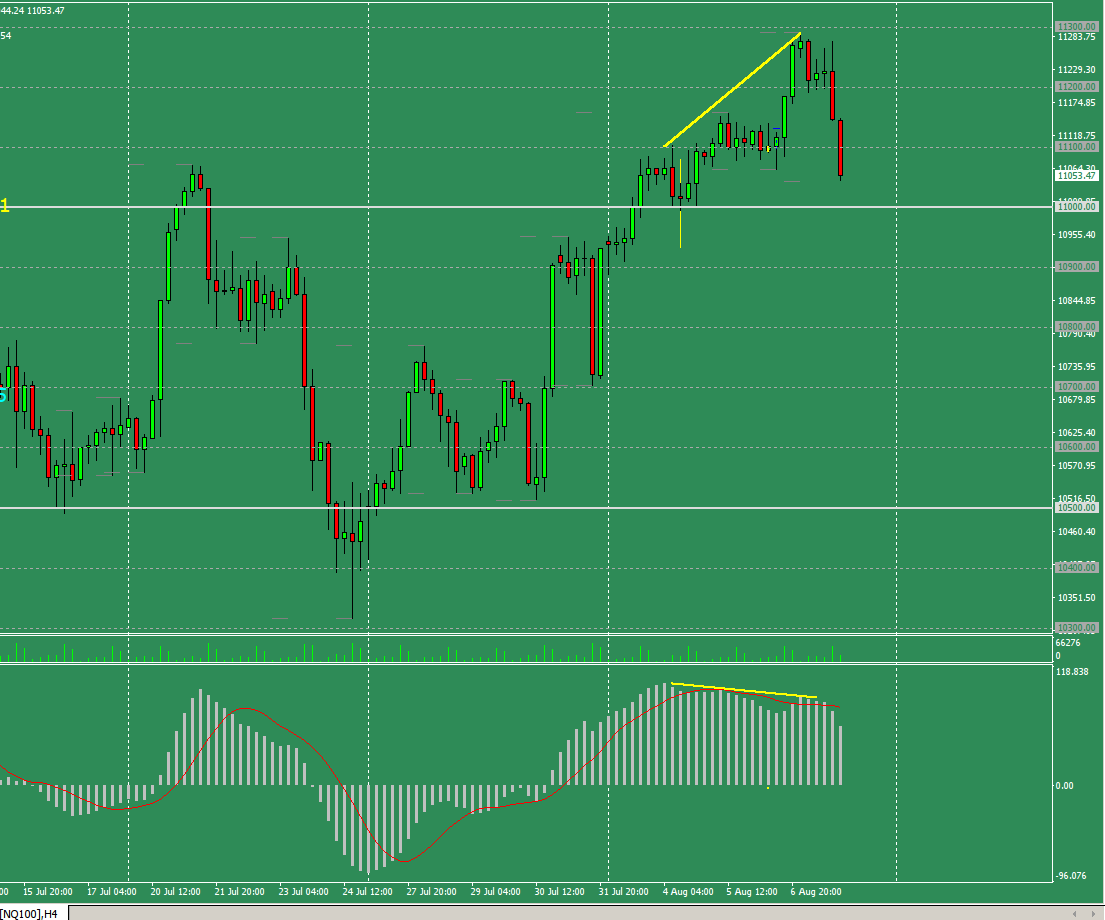 nasdaq - h4 - divergence 07.08.2020 20:33