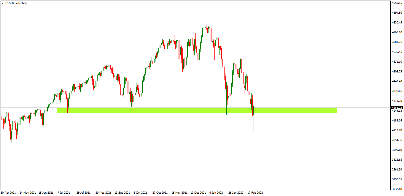 hlavne je potrebné riskovat percentuálne čo najmenej a používat široké SL. Aby niekto nechápal zle. Pod pojmom úzší SL ktorý som použil v príspevku vyššie chápme sl o cca 400 .. 500 ... 600 bodov pre nasdaq. Koli vojenskej invázii na ukrajinu som čakal po otvorení trhu vysokú volatilitu avšak smerom nadol. Trh je blízko mojho SL avšak stále ho nezasiahol. SL 600 bodov .. short .. vstup 13254 US100. Riziko na pozíciu ako vždy nízke. Takže napriek pravdepodobne 4 temu stoplossu v rade sa jedná stále o malé stráty, ktoré budú neskor kompenzované.
