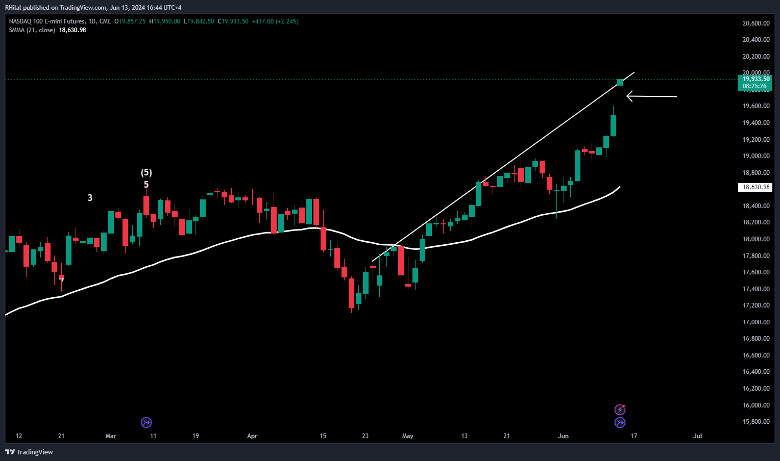 Index Nasdaq 100 se zastavil přesně od 20 000 bodů.
