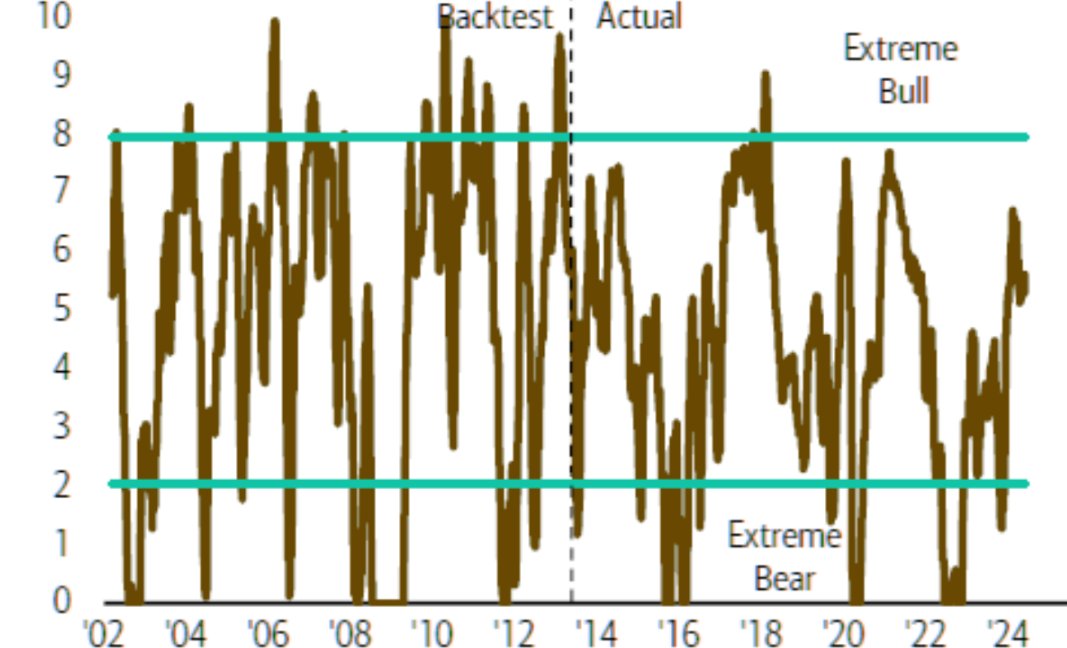 Tržní sentiment je obrazně řečeno zaseknutý. BofA Bull & Bear indikátor je v neutrálním módu.