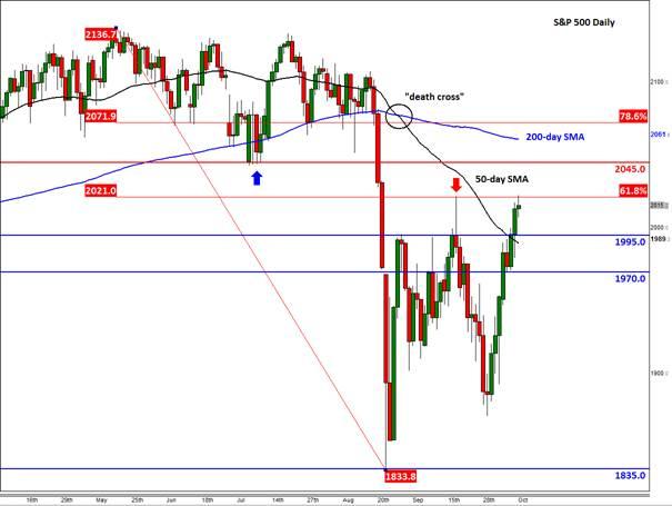 S&P 500 index SPX pekny obrat o 180 stupnu za 50 tydnu.