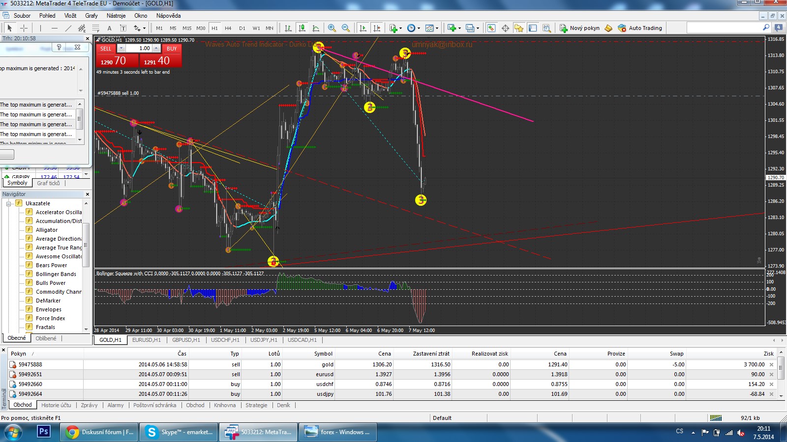 Ahoj Forexáci. Dlouho jsem tu nebyl. Měl jsem slabé období a chtěl jsem vážně s forexem skončit. Jenže jsem zjistil že to nejde. Je to droga. Díky tomu jsem u forexu vydržel a začalo se dařit. Tak snad to vydrží. Chci tim říci, že díky tomu, že jsem měl to slabé obdobý a projel hromadu peněz mě vlastně posílilo a zpomalilo moji tepovou frekvenci a neobchoduji už tak zbrkle. Na dobrý vstup si počkám. Dle mého je umění v tom umět čekat. Tak držím palce všem co se dosud trápí a nedaří se jim. Moje rade je. Zkoušejteto zleva, zprava. Dejte si pauzu. Vraťte se, uč te se, raďte se, ale hlavně mějte svůj pohled na trh nenechte si nic nakukat. Veškerý rádoby semináře a školení mě spíš sráželi než aby mi pomohly. Musel jsem si na to zkrátka přijít sám metodou pokus omyl. CCa 1 rok jsem zkoušel nejrůznější indikátory a jejich kombinace. Hrál jsem si i s nastavením indikátorů až jsem si sestavil koktejl z indikátorů, který mi hodně pomáhá. Tak držim palce ať si na to taky přijdete.