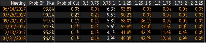 Pravdepodobnost zvysenia sadzieb (FED) 14.6.2017 sa zvysila z 69% na 93%. Macron EurUsd hore neposle. LePenova ho moze poslat dole vyrazne. Myslim ze smer je jasny.
