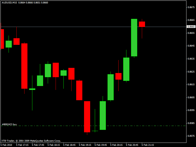 Tak ten dnešek nemá chybu,ještě před pár hodinami si ztěžuju,že neuzavírám obchody na stanoveném targetu. Udělal jsem ještě jeden obchod,ač jsem si nemyslel,že by tam cena mohla dojít.Měl jsem zadáno Buy entry na důležitém supportu na AUD jako otočku do protitrendu,jen tak bez pt,sl přijdu o 2.5hodiny k PC a vídím tohle...(viz graf).Neváhám,ukládám a zavírám pozici na 0.8667,dobrých 84 pipů,tak ale to jsem měl vážně štěstí. Ted už jsem nadobro dnes skončil a těším se na pondělí.Přál bych si obrovskej Buy-Gap pro dobré příležitosti,snad nám G7 pomůže.