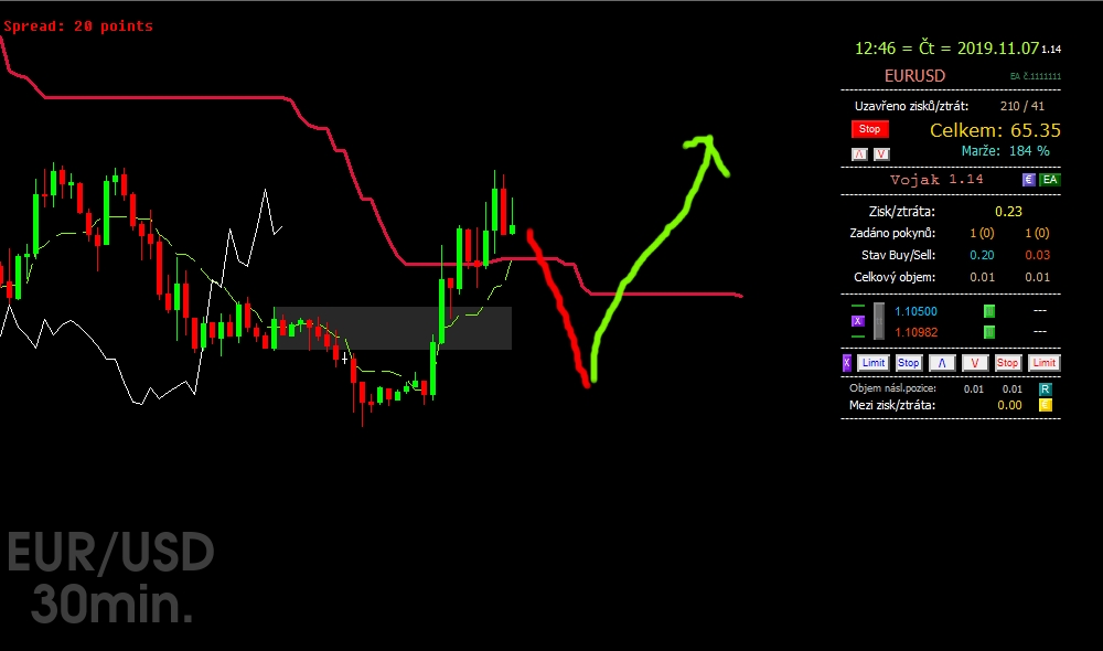 Či źe idem proti trendu, aj proti vlastnému dlhodobému presvedčeniu a začinam doplňovať  nákupy 0,01ml.  v odstupoch spreadu. Prečo? Preto, lebo ja, alebo aos nakupujeme keď je lacno a predávam keď je draho, aby som nemusel nakupovať keď je draho a predávať keď je lacno.  Tento postup aos dodržuje na všetkých živých účtoch. Tak uvdíme, kto vydrží viac. Aos Vojak bude systémom vlastným, nakupovať kľudne do 0, krachu EUR a aj tak zarobí,