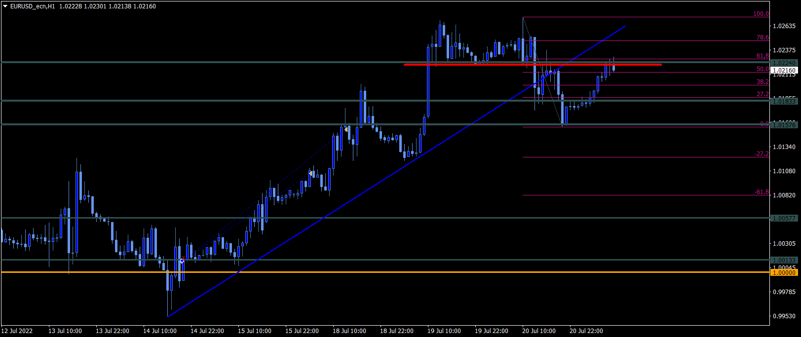EUR/USD a parita (H4 graf) 24.07.2022 10:16