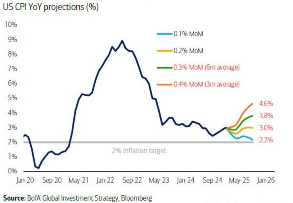 Meziroční index CPI v USA má v příštích 6 měsících tendenci dosahovat 4 %.