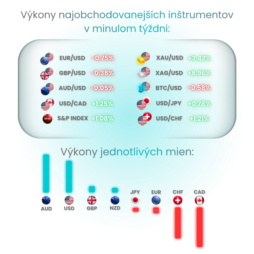 Najsilnejšiou menou v uplynulom týždni bol Austrálsky dolár, ktorý spoločne s tým Americkým (aj napriek horším výsledkom NFP, potiahol dolár pozitívny výsledok v nezamestnanosti ktorá klesla na 4.5%) dominovali v uplynulom týždni.