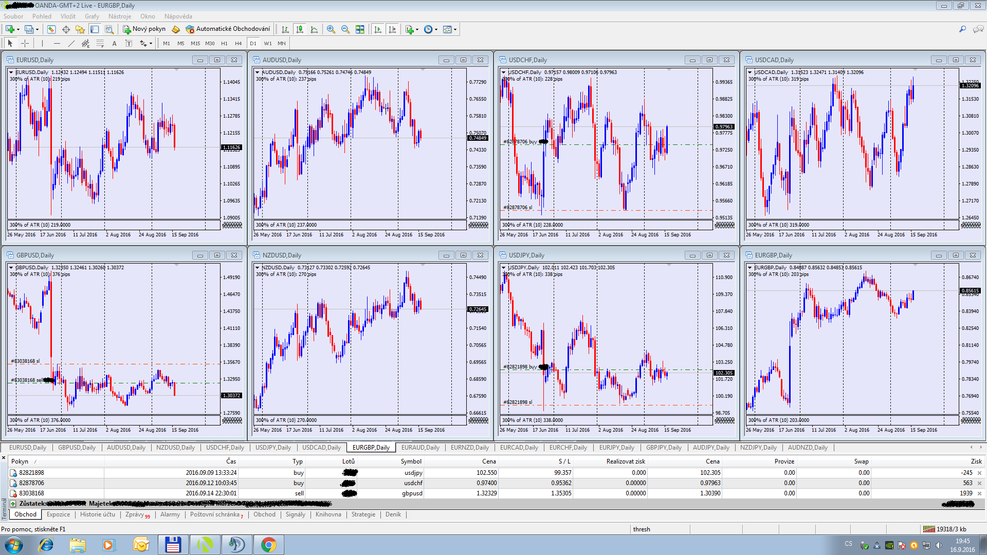 Broker: Purple Trading (forex) | XTB (akcie) | Swissquote Bank (indexy a komodity). Obchodní systém: Price Action, S/R, VIP zóna.