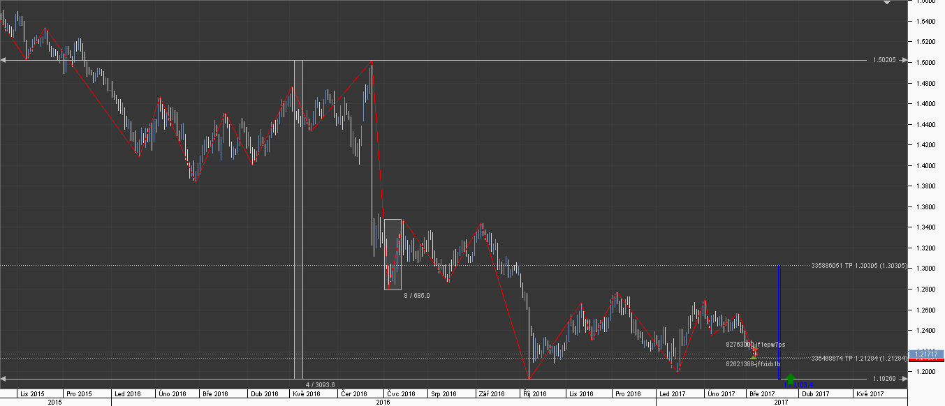Moje otevřená pozice od 4.5.2017. TP není pevný, ale zatím logický.