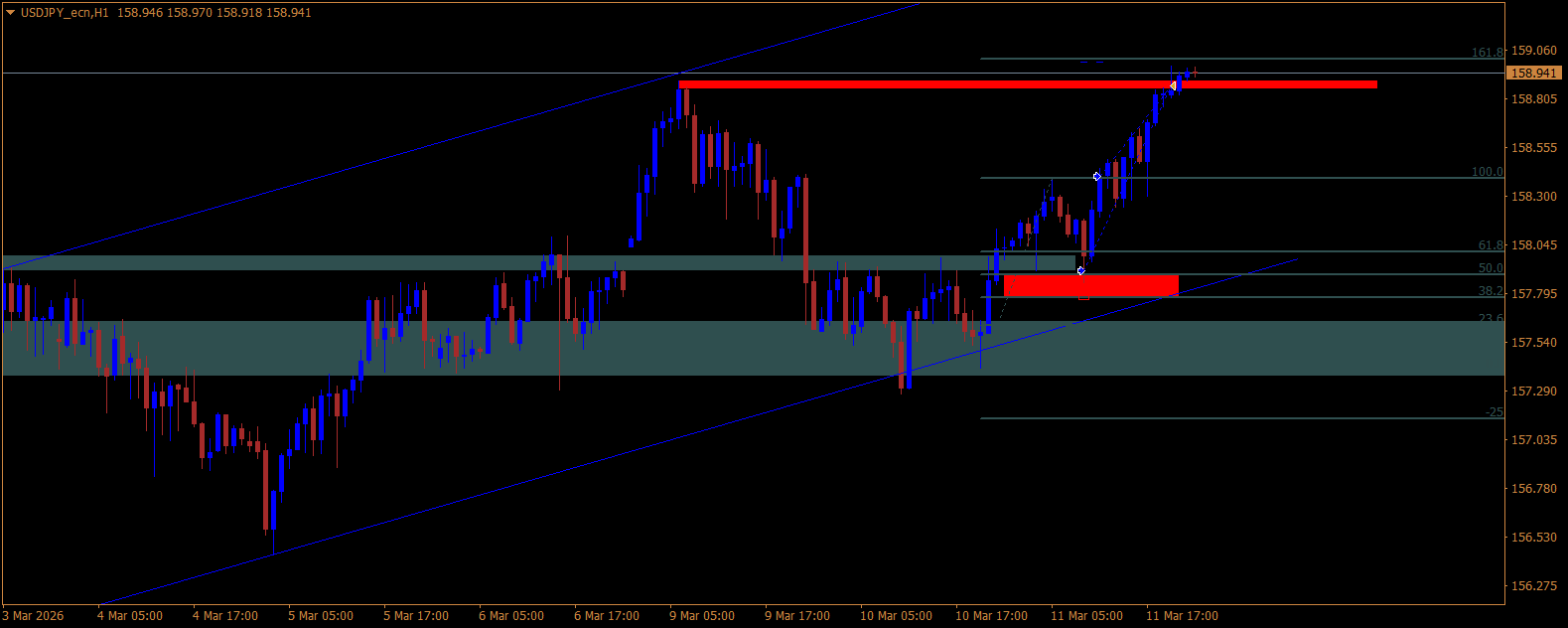 Analýza měnového páru USD/JPY – Multitimeframe pohled (D1 až H1)