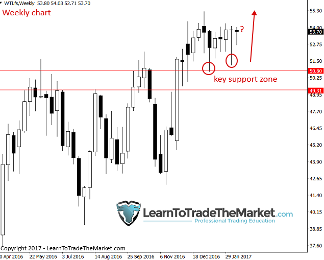 Nial Fuller a jeho pohled na Price Action ropy - W1 graf.