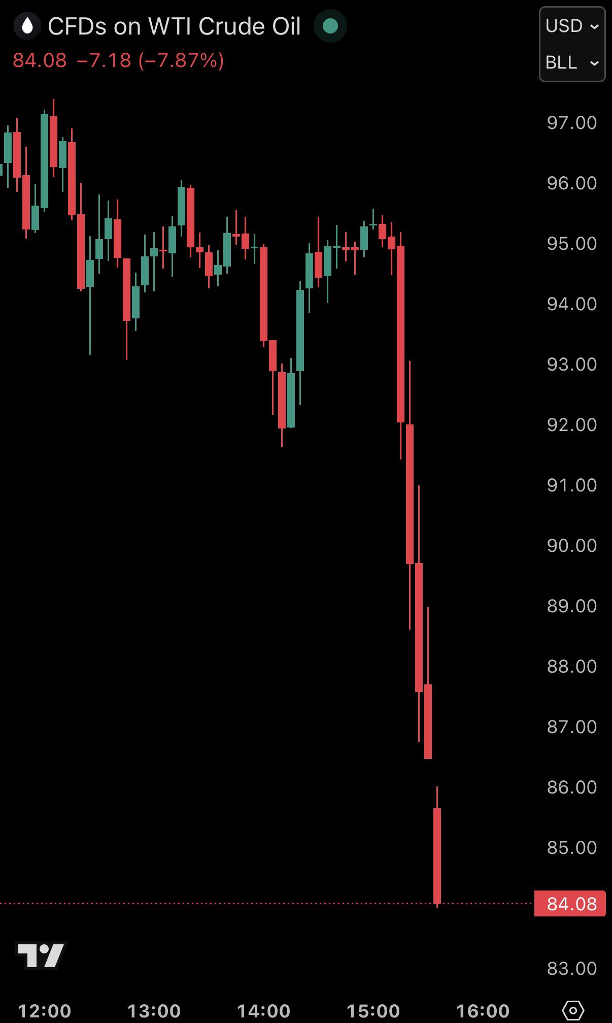 Ceny ropy klesly pod 84 dolarů za barel, což je od včerejších maxim pokles o více než 30 %.
