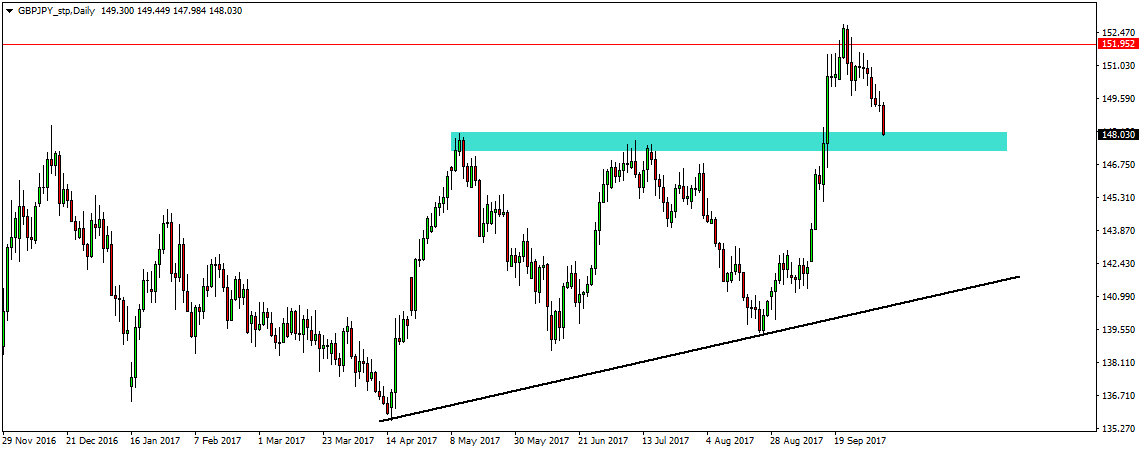 Jinak k USD. Současné posílení je díky tomu, že trh spekuluje na průchod daňové reformy v USA. Ovšem v případě jakýchkoliv problémů přijde vystřízlivění a USD pojede opět pěkně dolů. Takže jen vyčkávám na naskočení do klesajícího trendu na USD. USD/CHF a USD/JPY jsem trochu popsal v grafech, vidím to stále stejně. Alespoň tedy na denním grafu. H1 a H4 vypadá samozřejmě jinak. Ale já preferuji delší časové horizonty. J.H.