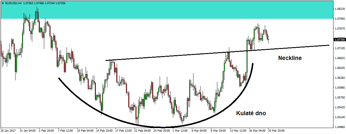 Jinak na EUR/USD H4 je k vidění formace kulaté dno, takže budu opatrný s případným shortem v zóně rezistence a budu čekat na nějaké potvrzení shortu.