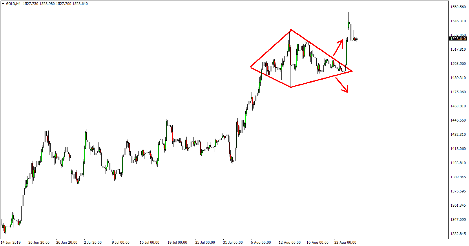 Zdravím, na zlatě se vytváří ne příliš častá diamantová formace, která by mohla naznačit (po prolomení) další trend. J.H.