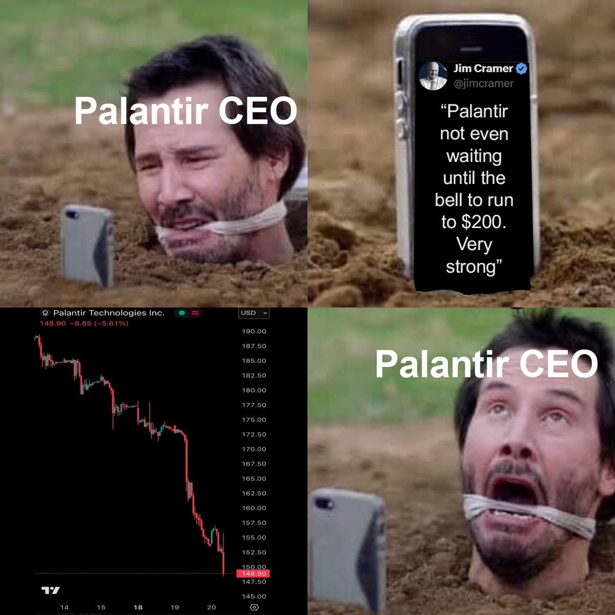 Trading vtípek: Akcionáři Palantiru, když akcie jeden den klesají, ale dlouhodobě jsou v obrovském zisku. smile