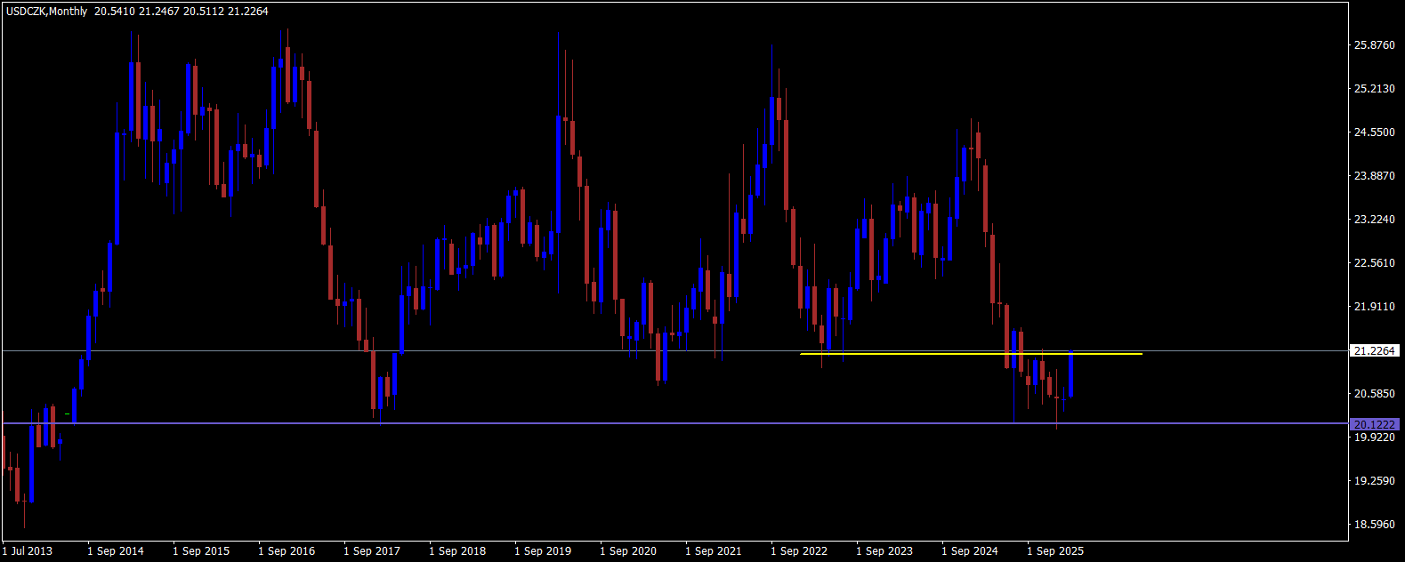Tak jsem si dnes dopoledne trochu hrál s tím, že jsem zkoušel vkládat graf jednoho měnového páru do jiného a zdá se, že jsem pochopil na základě čeho se pohybuje USD/CZK. Fundamenty z Čech mají na kurz asi hodně malý dopad. Když vložím do jednoho grafu EUR/USD a zároveň USD/CZK, tak je vidět, že se ty grafy pohybují skoro zrcadlově. Můj závěr z toho je takový, že na kurz USD/CZK má vliv především pohyb na EUR/USD. Pokud někdo obchoduje EUR/USD na denních grafech, tak může to samé klidně obchodovat i na USD/CZK, pouze s tím rozdílem, že bude dávat reverzní pozice. Při obchodování s USD/CZK bude mít výhodu v nižší volatilitě.