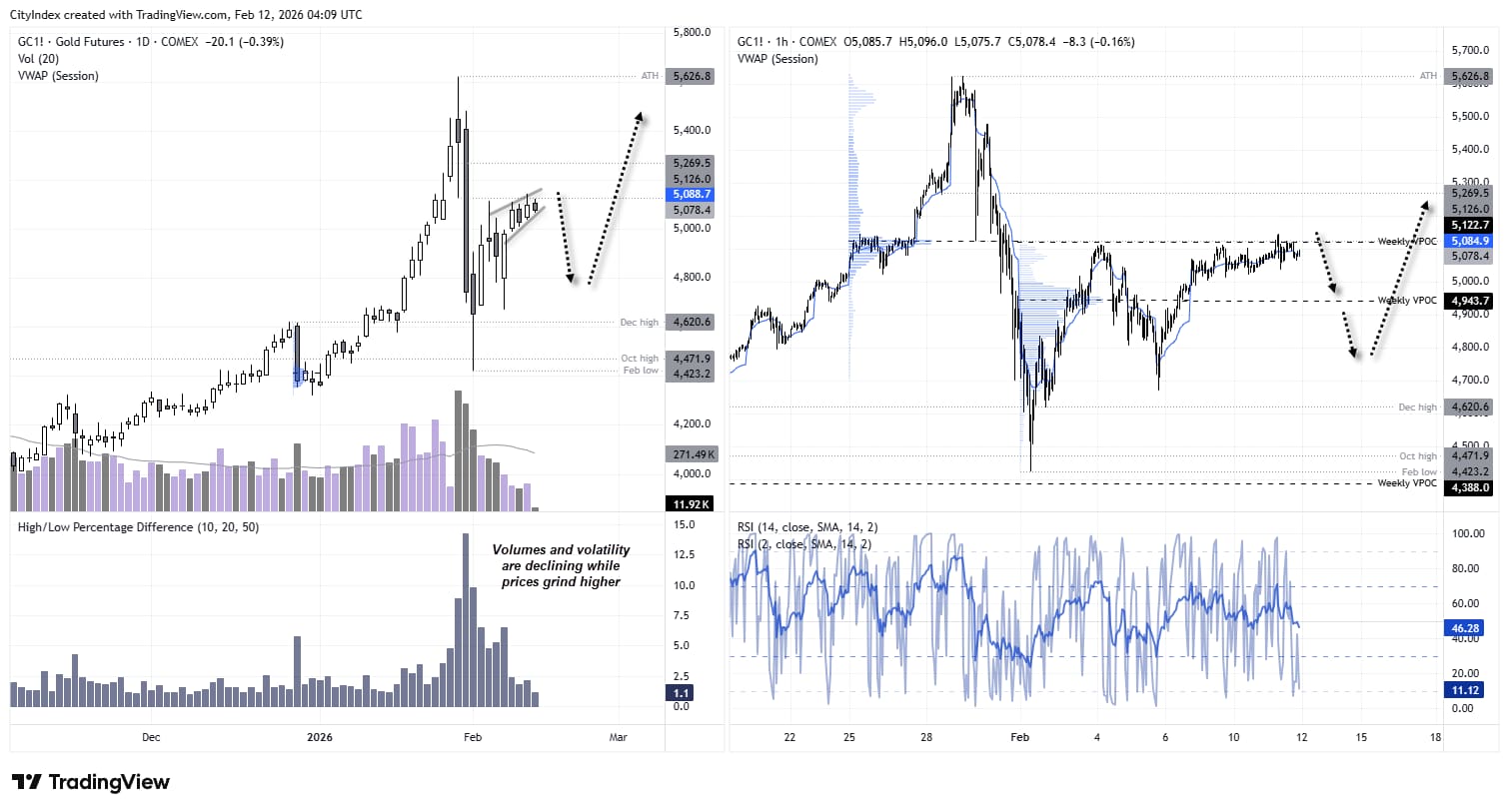 Gold Futures (GC) - D1 a H1 12.02.2026 07:55
