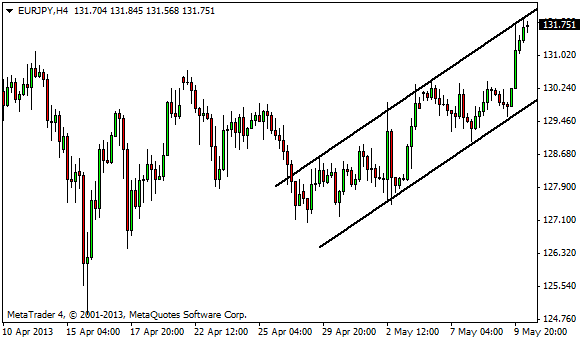 Vývoj měnového páru EUR/JPY (4hodinový graf – H4):