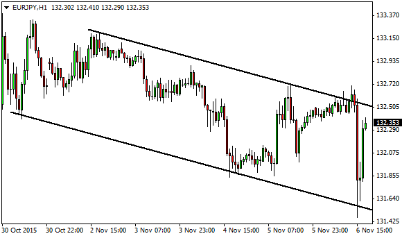 Vývoj měnového páru EUR/JPY (1hodinový graf – H1):
