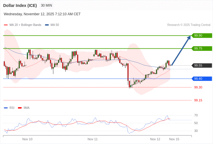 Preferovaný scénář: Dlouhé (long) pozice nad 99,40 s cílem na 99,75 a dále pak až na 99,90.