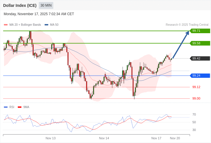 Dolarový index - Intradenní výhled 17.11.2025