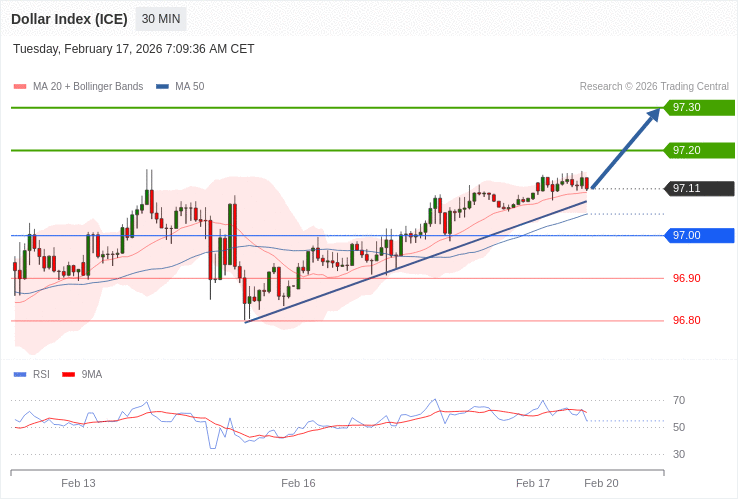 Komentář: Průraz nad hladinu 97,00 je pozitivní signál, který by mohl umožnit růst směrem k hladině 97,20.