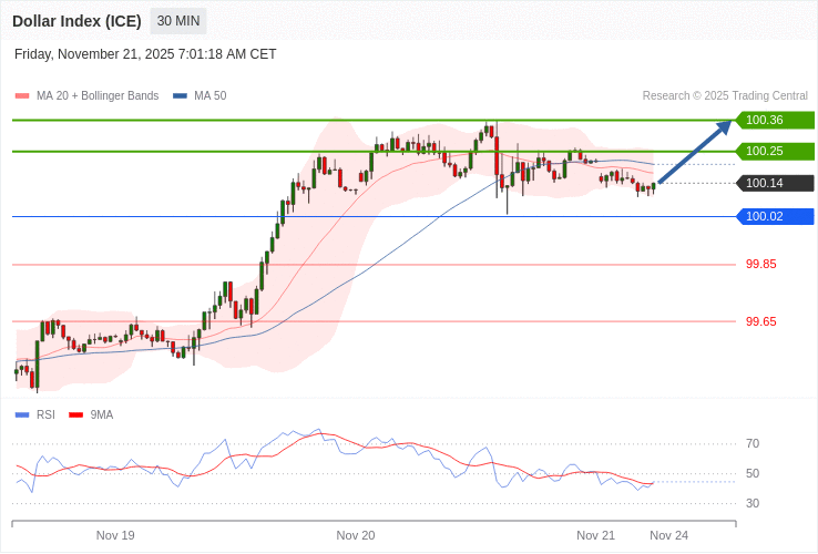 Preferovaný scénář: Dlouhé (long) pozice nad 100,02 s cílem na 100,25 a dále pak až na 100,36.