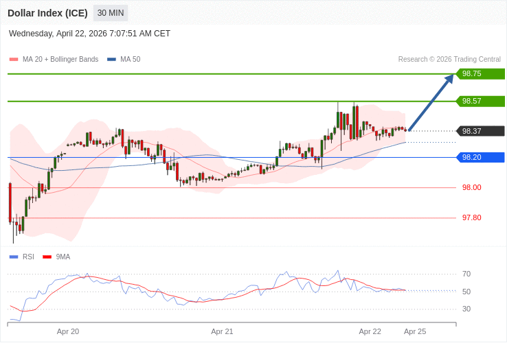 Klíčová slova: Intradenní výhled | Dolarový index | Indikátor | Long | Pozice | RSI | Rezistence | Trading | Index | Pivot | Signály | Trading Central | Supporty a rezistence | Výhled | Pokles | Indikátor RSI | Dlouhé (long) pozice | Supporty |