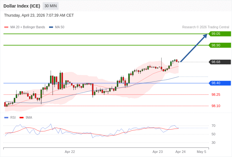 Klíčová slova: Intradenní výhled | Dolarový index | Indikátor | Long | Pozice | RSI | Rezistence | Trading | Index | Pivot | Trading Central | Supporty a rezistence | Výhled | Pokles | Indikátor RSI | Další růst | Růst | Dlouhé (long) pozice | Supporty |
