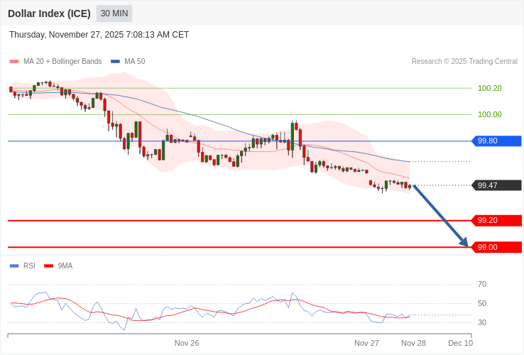 Klíčová slova: Intradenní výhled | Dolarový index | Pozice | Rezistence | Short | Trading | Obchodovat | Index | Pivot | Trading Central | Supporty a rezistence | Výhled | Krátké (short) pozice | Medvědi | Růst | Supporty |