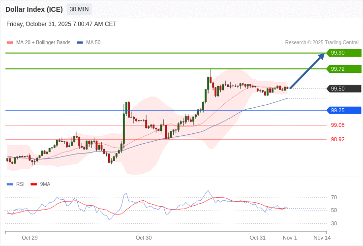 Klíčová slova: Intradenní výhled | Dolarový index | Indikátor | Long | Pozice | RSI | Rezistence | Trading | Index | Pivot | Trading Central | Supporty a rezistence | Výhled | Pokles | Indikátor RSI | Dlouhé (long) pozice | Supporty |