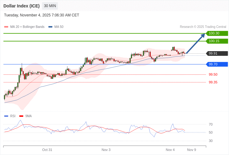 Preferovaný scénář: Dlouhé (long) pozice nad 99,70 s cílem na 100,15 a dále pak až na 100,30.