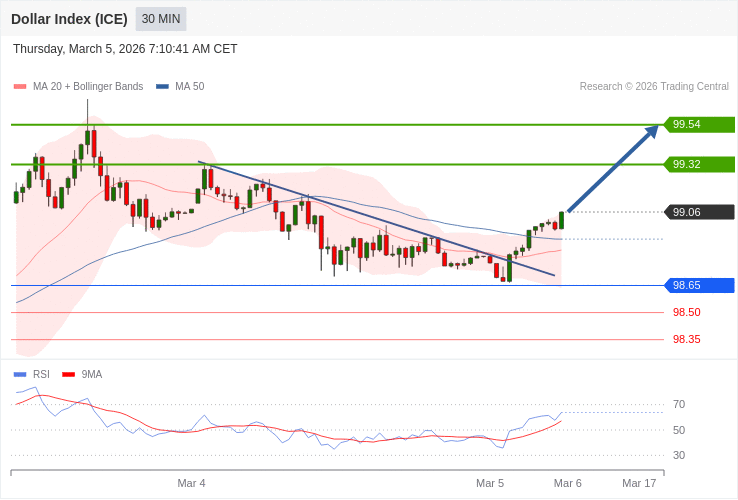 Dolarový index - Intradenní výhled 5.3.2026