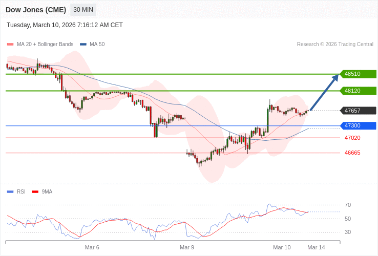 Dow Jones - Intradenní výhled 10.3.2026