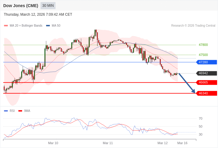 Dow Jones - Intradenní výhled 12.3.2026
