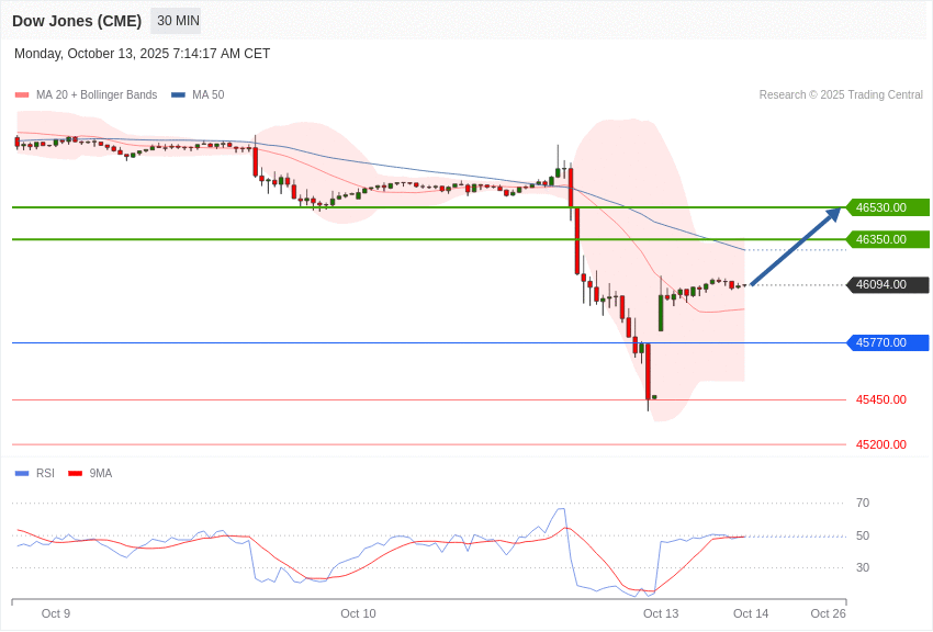 Dow Jones - Intradenní výhled 13.10.2025