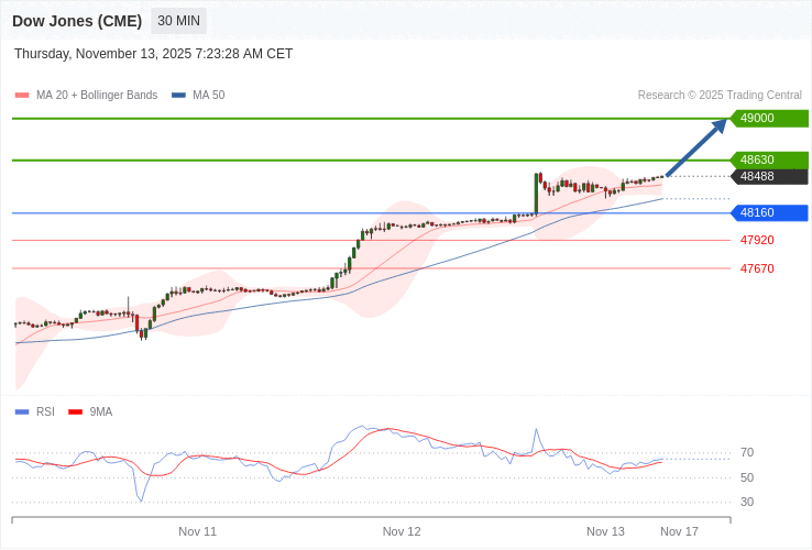 Dow Jones - Intradenní výhled 13.11.2025