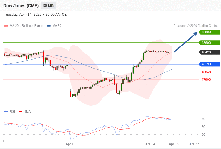 Klíčová slova: Intradenní výhled | Dow Jones | Indikátor | Long | Pozice | RSI | Rezistence | Trading | Pivot | Trading Central | Supporty a rezistence | Výhled | Pokles | Indikátor RSI | Dlouhé (long) pozice | Supporty |