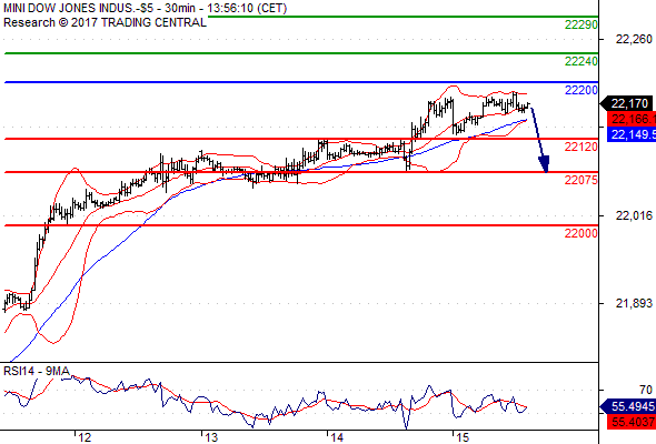 Klíčová slova: Intradenní výhled | Dow Jones | Indikátory | Pozice | Rezistence | Short | Trading | Pivot | Trading Central | Technické indikátory | Supporty a rezistence | Výhled |